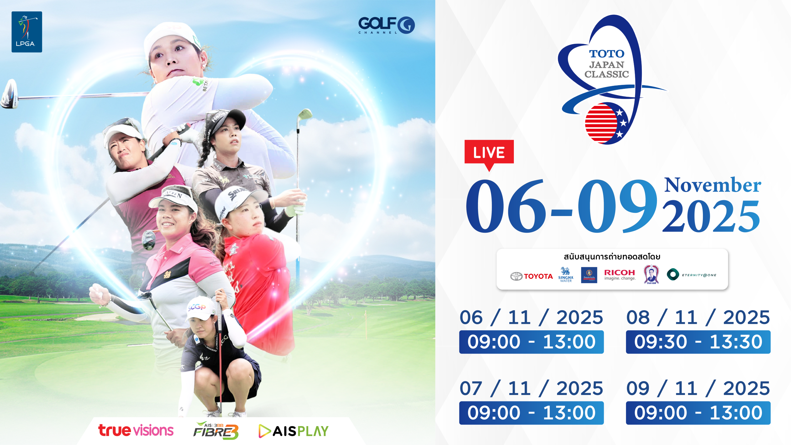 สัปดาห์นี้พบกับการถ่ายทอดสด การแข่งขันกอล์ฟ LPGA Tour รายการ TOTO Japan Classic แข่งขันที่สนาม Seta Golf Course ประเทศญี่ปุ่น ชิงเ