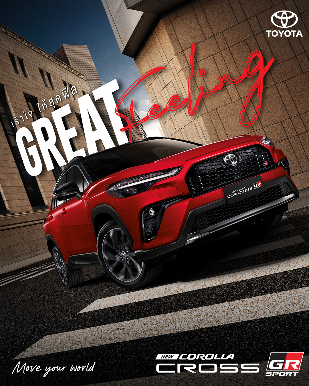 • Sport Design ตกแต่งแบบสปอร์ตรอบคัน • พวงมาลัยพร้อมสัญลักษณ์ GR • เข็มขัดนิรภัยสีแดง • กระจังหน้าดีไซน์ใหม่พร
