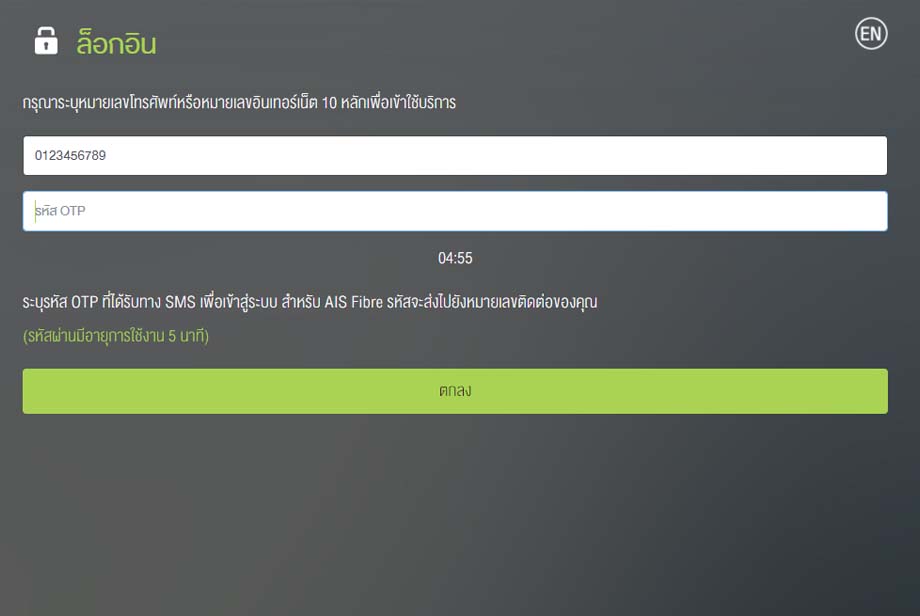 1.คลิกที่ภาพหรือปุ่มด้านบนจากนั้นใส่หมายเลขโทรศัพท์ของคุณ